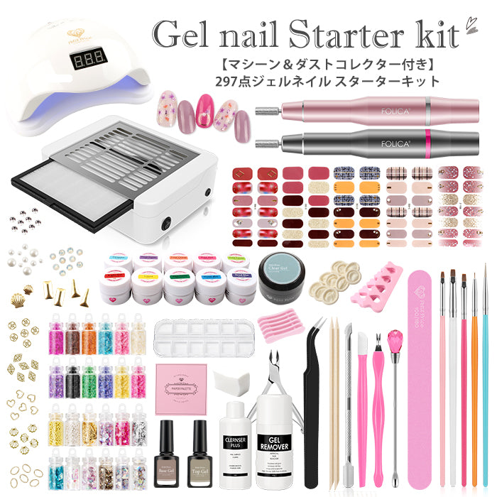 お家に届いてすぐに始められる♪ マシーン&ダストコレクター付き297点セルフジェルネイルスターキット