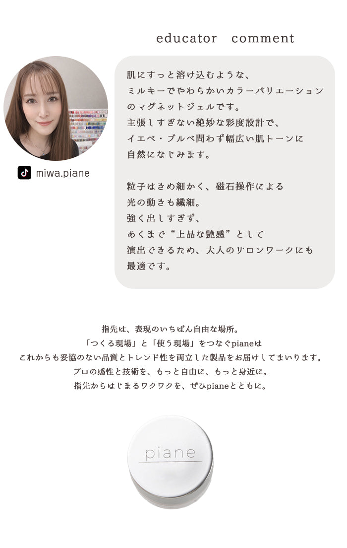 [ご使用上の注意] ・塗布量によりカラー紹介画像とは異なる発色になる場合がございます。 塗布量を調節しながら、マグネットジェルをお楽しみくださいませ。